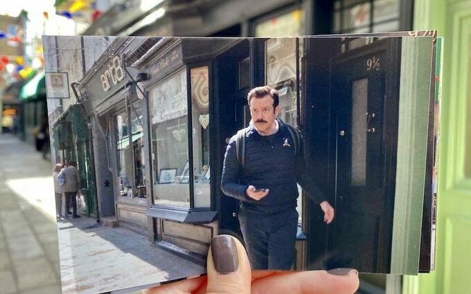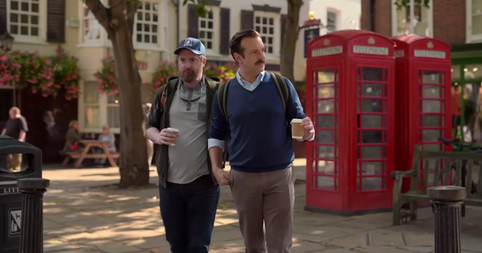 Две классические красные телефонные будки также легко можно встретить на привычном для телесериала маршруте следования на работу Теда Лассо и его неизменного друга-ассистента Тренера «Бороды».