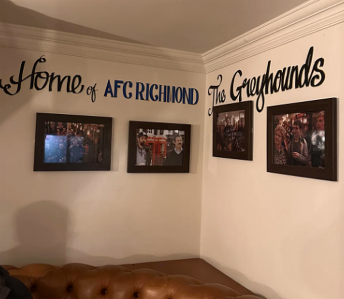 Внутри заведения развешено множество шарфов АФК «Ричмонд», есть табличка с надписью «Believe» (в переводе с английского – «Верь»), ставшая одной из визитных карточек сериала, а также много всевозможных фотографий актеров, футболка в рамке, табличка с вымышленного домашнего стадиона «Ричмонда» под названием «Нельсон Роуд» и даже стол тренерского штаба.