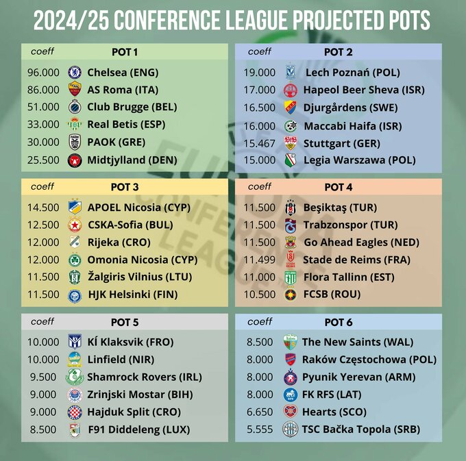 Лига конференций 2024/25. Прогнозируемые корзины посева