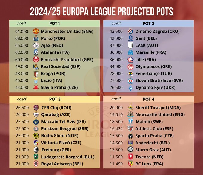 Лига Европы 2024/25. Прогнозируемые корзины посева
