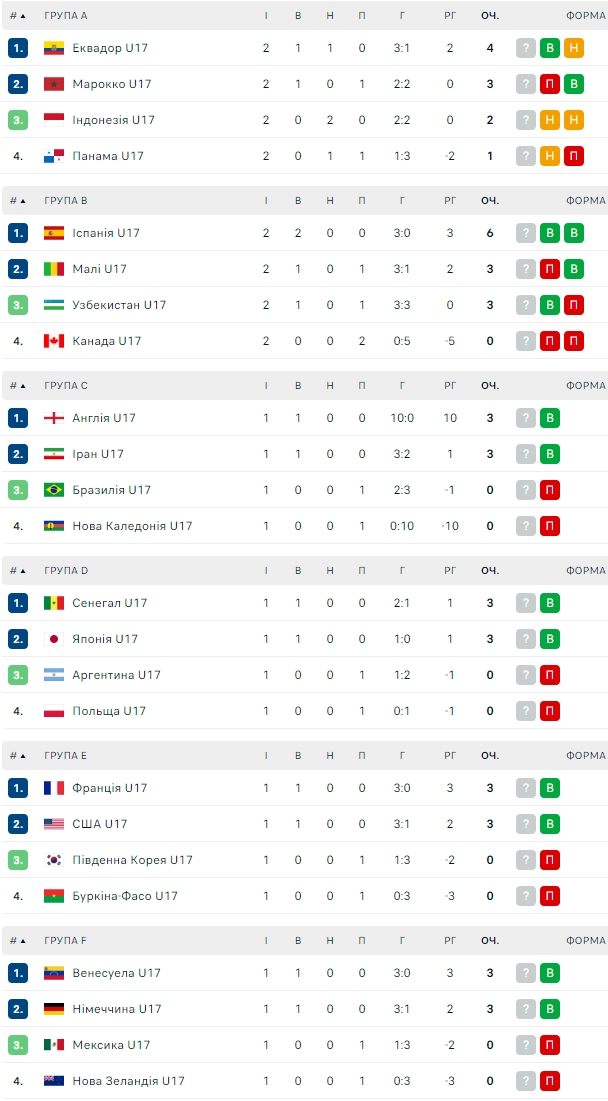 - Марокко U-17 – Эквадор U-17 – 0:2