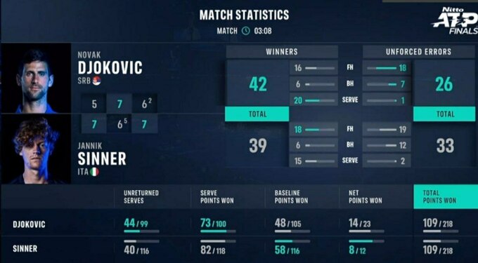 Отметим, что до поединка с Синнером у Джоковича был невероятный винстрик из 19 матчей.