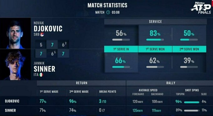 Это была 5-я встреча теннисистов. Синнер впервые обыграл серба.