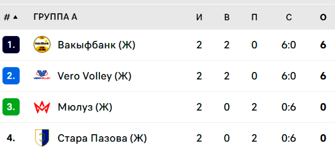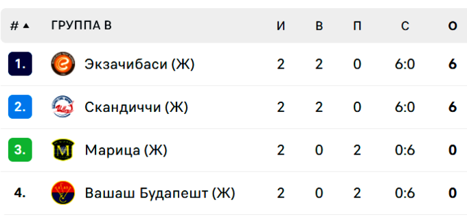 В этой же группе вторую победу подряд одержали волейболистки французского «Волеро». На выезде они оказались сильнее «Албы Блаж» из Румынии 3:2. После этого тура француженки возглавили группу Е, а «Прометей» пока остается без очков и занимает последнее 4 место.