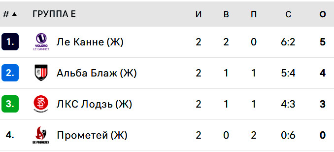 После 2-го тура Лиги чемпионов Прометей замыкает группу Е