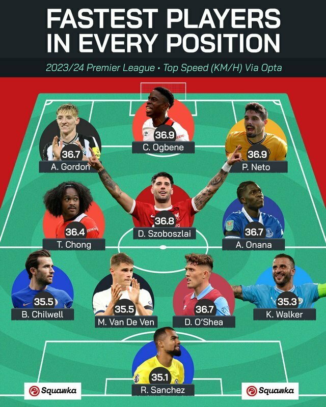 Полузащитники: Тахит Чонг («Лутон», 35,4), Амаду Онана («Эвертон», 36,7), Доминик Собослаи («Ливерпуль», 36,8)
