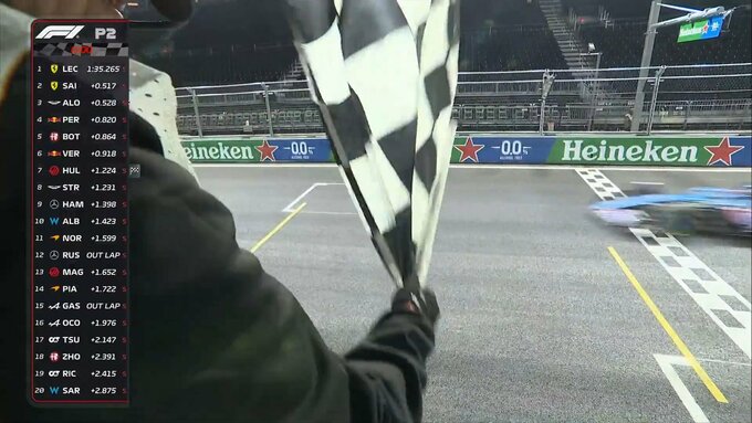 Вторая практика находилась под угрозой срыва, но все же стартовала с большим опозданием. В ней быстрейшим был дуэт Феррари Шарль Леклер - Карлос Сайнс. Топ-3 замкнул Фернандо Алонсо.