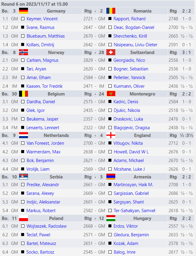 Шахматы. Командный чемпионат Европы 2023