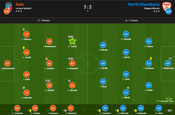 Оценки WhoScored за матч Италия – Северная Македония – 5:2