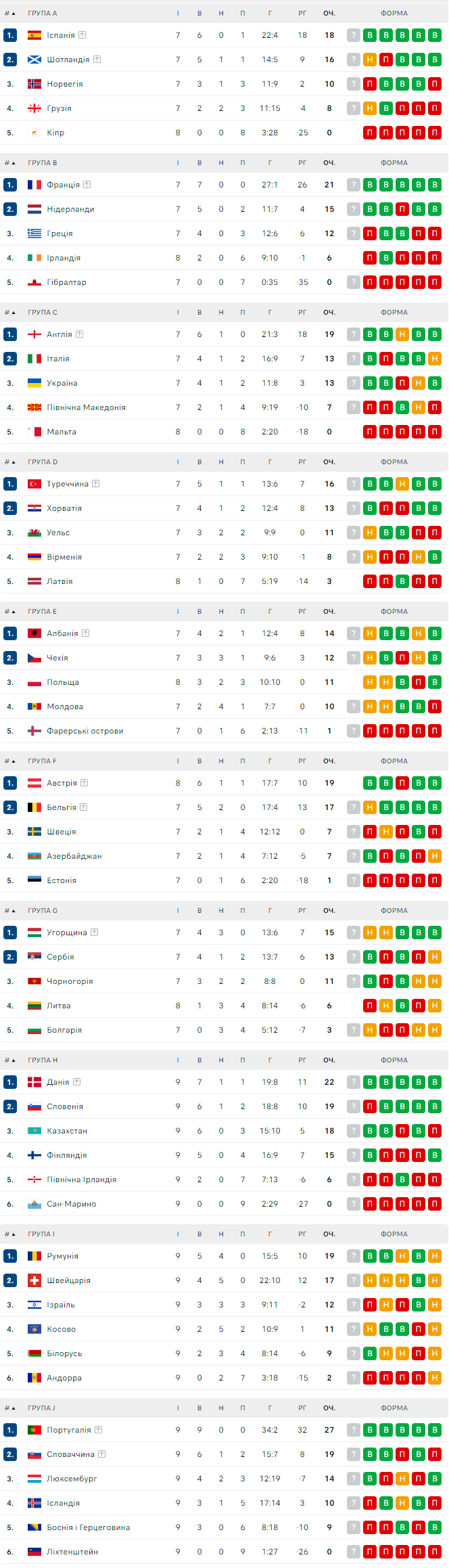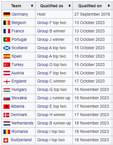 Таблицы Евро-2024. Уже известны 16 команд, которые вышли в финальную часть