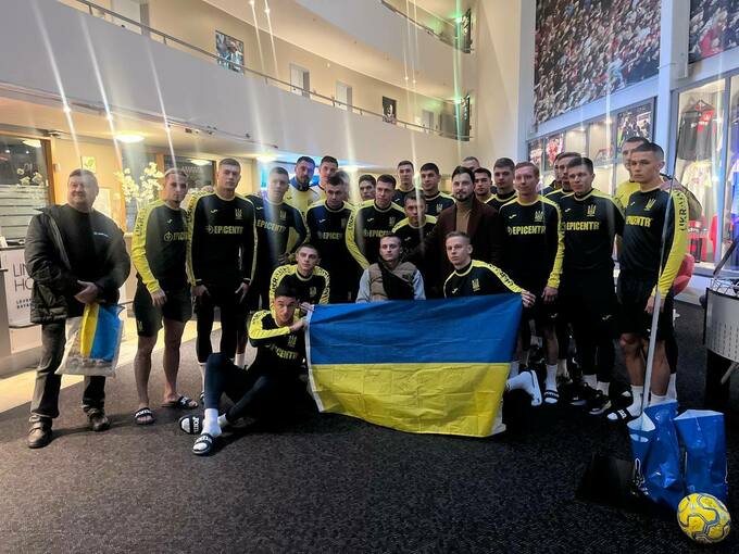 ФОТО. Игроки сборной Украины подписали флаг для раненого военного