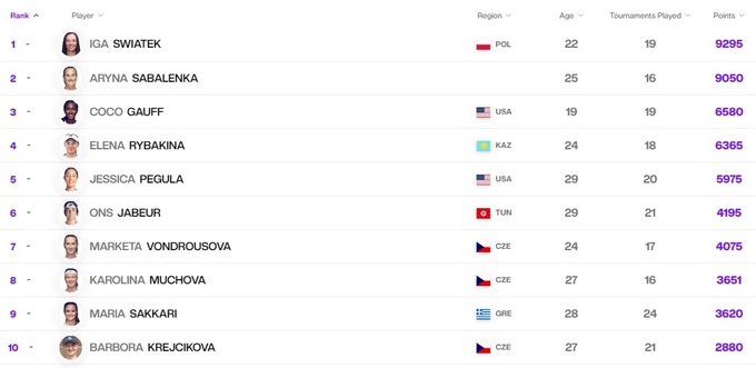 На прошлой неделе женщины сыграли турнир WTA 125 в Колине (Чили). Титул взяла перспективная 17-летняя чешка Сара Бейлек. Это позволило ей подняться на 60 позиций, дебютировав в топ-150 (134 позиция).