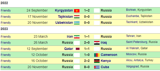 Отметим, что со времени отстранения от всех международных соревнований в феврале 2022 года сборная россии провела дома только два товарищеских матча, обыграв 26 марта в Санкт-Петербурге Ирак (2:0) и одолев 12 октября в Москве национальную команду Камеруна (1:0).