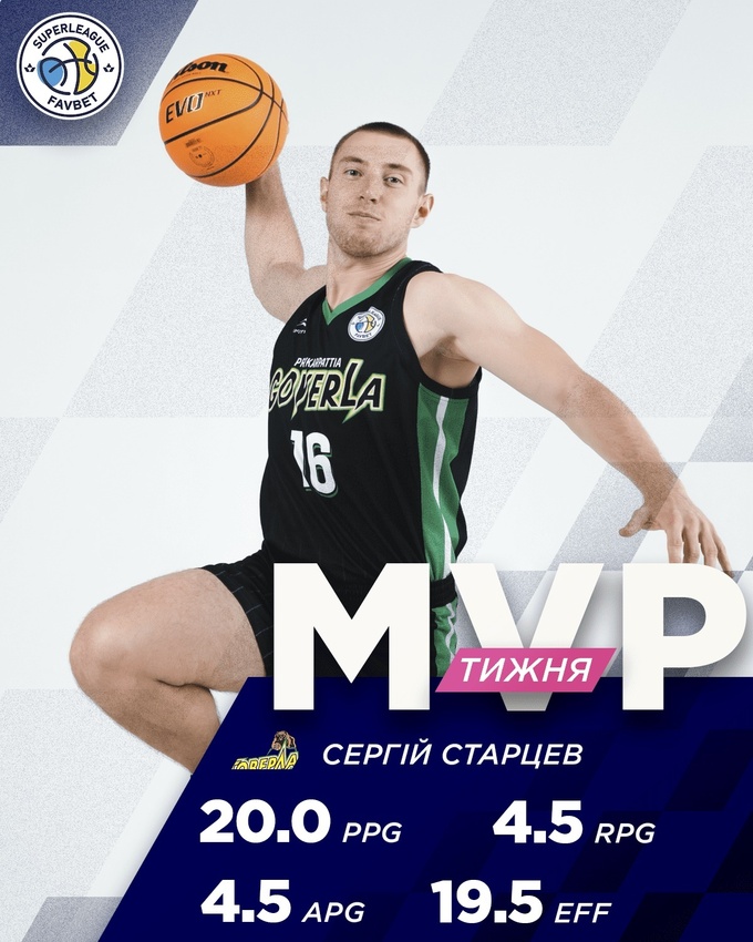 Старцев в среднем в победных матчах против «Политехники-Галичины» (89:67) и «Ровно» (67:66) набирал 20,0 очка, делал 4,5 передачи и 4,5 подбора, реализуя 40% трехочковых бросков. «Прикарпатье-Говерла» в турнирной таблице поднялась на пятое место, имея 4 победы в 6 матчах.