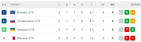 В группе 7 украинцы под руководством Олега Кузнецова выступают на Мальте с командами хозяев, Словакии и Косова. Для выхода в элит-раунд отбора нужно занять в квартете первое или второе место. Также путевку туда получит лучшая из третьих команд.