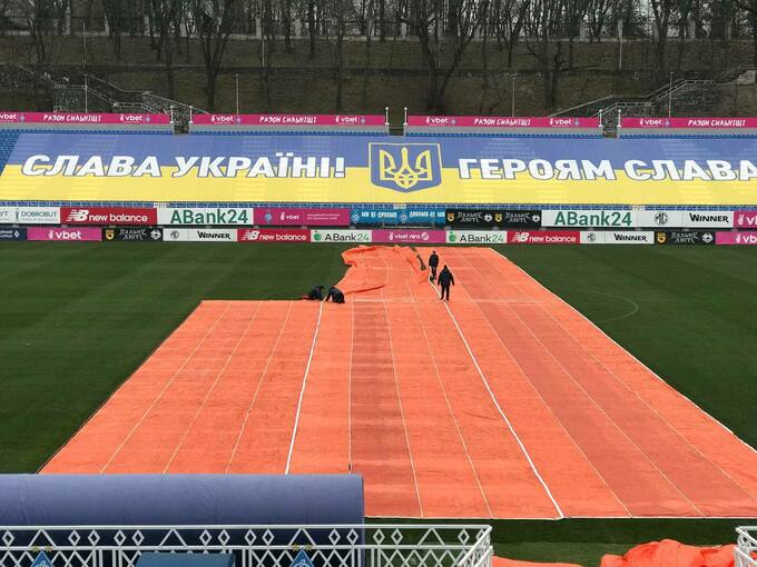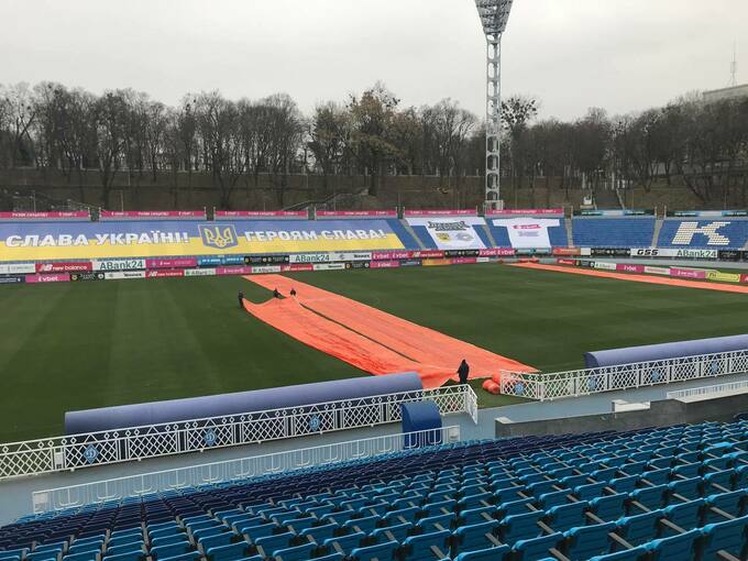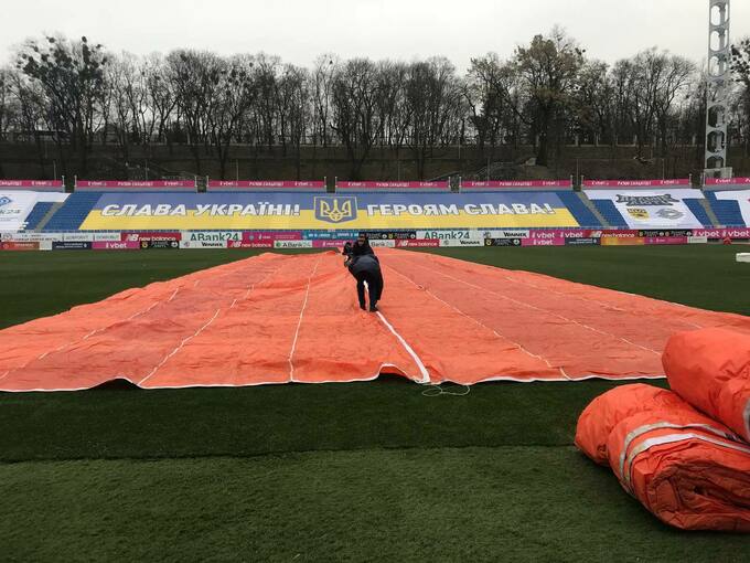 Киевское Динамо подготовило газон стадиона к первому снегу.