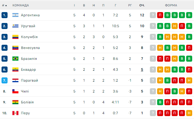 На ЧМ от Южной Америки выйдут 6 команд из 10, а еще одна попадет в межконтинентальный плей-офф.