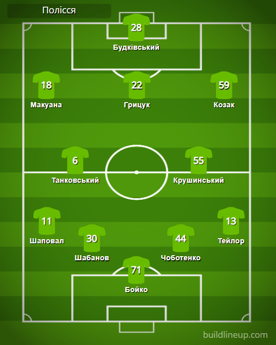 «Полесье»: Бойко – Шаповал (Смоляков, 46), Шабанов, Чоботенко, Тейлор – Танковский, Крушинский (Кушниренко, 64) – Макуана (Шастал, 46), Грицук (Ариелсон, 78), Козак – Будковский (Огиря, 88).