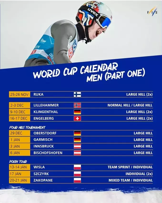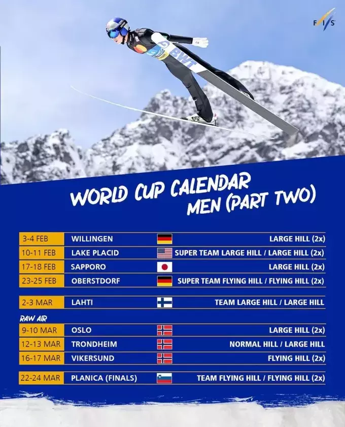 Финал сезона по традиции состоится в конце марта в словенской Планице. Полетных соревнований в нынешнем сезоне будет достаточно: кроме Планицы, Викерсунда и ЧМ в Бад Миттерндорфе, есть в календаре и этап на гигантском трамплине в Оберстдорфе в конце февраля.