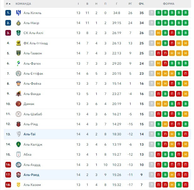 Что касается турнирной таблицы, то «Аль-Наср» поднялся на вторую строчку, отставая от «Аль-Хиляля» на одно очко. Правда, у последних есть еще один матч в запасе.