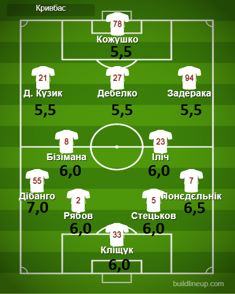 Замены Кривбасса: В. Близниченко - 7,0, Вакулко - 4,0, Приходько - 6,0, Татарков - 6,0, Устименко - б/о.