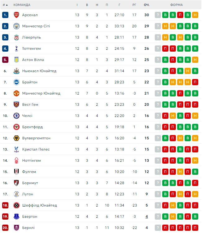 Благодаря этой победе «канониры» возглавили турнирную таблицу чемпионата Англии, опередив «Манчестер Сити» (29) и «Ливерпуль» (28), которые ранее сыграли вничью 1:1. У подопечных Микеля Артеты теперь 30 пунктов.