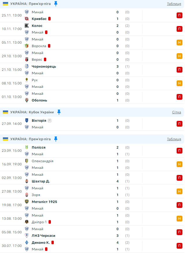 Серии Миная: 16 матчей без побед, 8 ігр без забитых голов