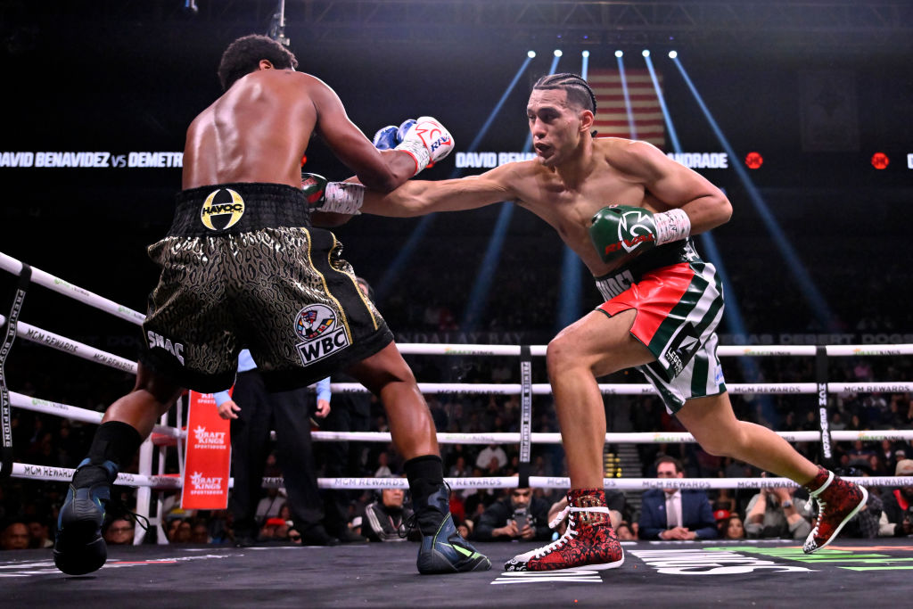 Бенавидес и Андраде – разные боксеры технически и физиологически. Давид – здоровенный боксер. Ему достаточно просто прибавить в весе и не выглядеть хуже в следующей категории. Деметриус вообще говорил, что видит, как его оппонент через несколько лет переходит в тяжелую категорию.