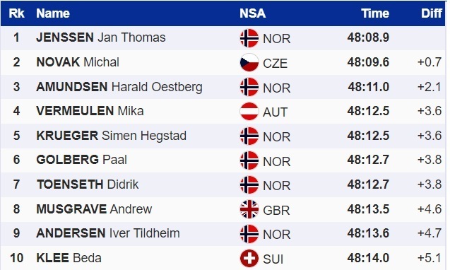 Йенссен опередил чеха Михала Новака и партнера по сборной Норвегии Харальда Остберга Амундсена.