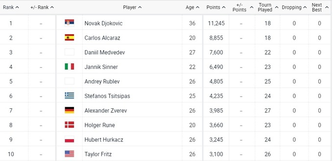 Топ-10 рейтинга ATP