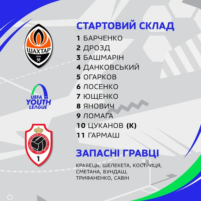 Шахтер U-19 – Антверпен U-19. Стали известны стартовые составы