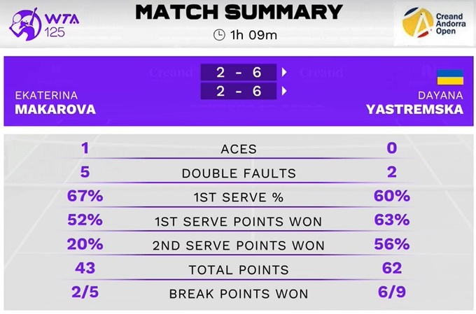 Даяна Ястремская (Украина) – Екатерина Макарова – 6:2, 6:2