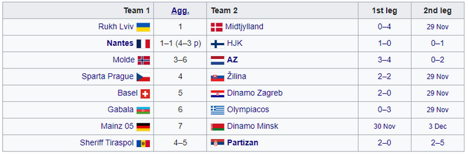 Первый матч прошел 8 ноября в Польше, и была зафиксирована победа «Мидтьюлланда» со счетом 4:0.