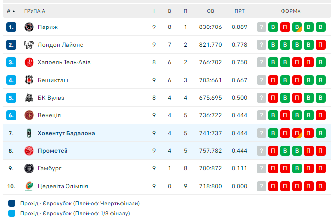 «Ховентут Бадалона» –«Прометей» – 79:76 (15:26, 18:15, 29:20, 17:15).