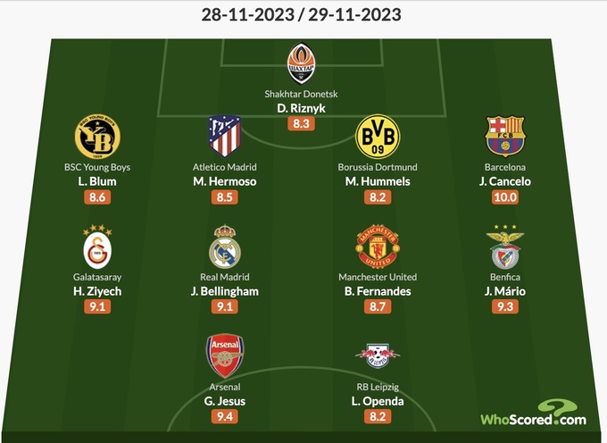 Самый высокий балл в символической сборной получил защитник «Барселоны» Жоау Канселу – 10.0.
