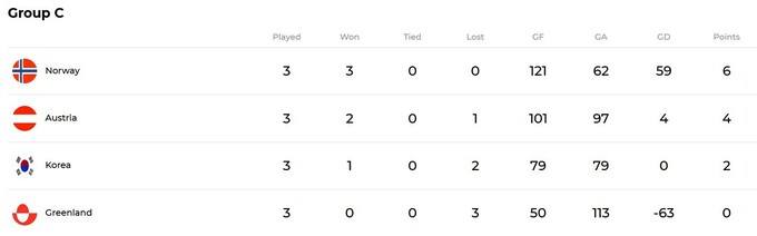 Группа С: Норвегия, Австрия, Южная Корея, Гренландия