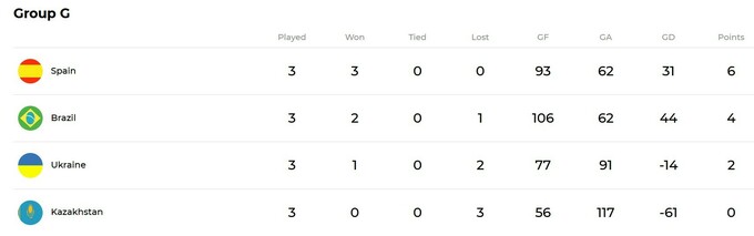 Группа G: Испания, Бразилия, Украина, Казахстан