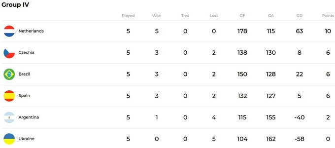 Группа 4: Нидерланды, Испания, Бразилия, Чехия, Аргентина, Украина