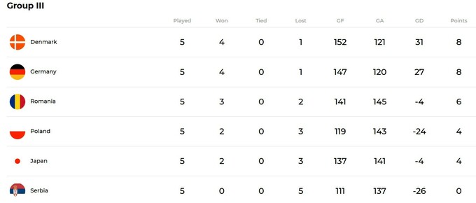 Группа 3: Дания, Германия, Румыния, Польша, Япония, Сербия