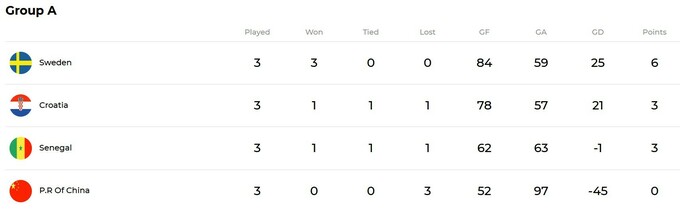 Группа А: Швеция, Хорватия, Китай, Сенегал