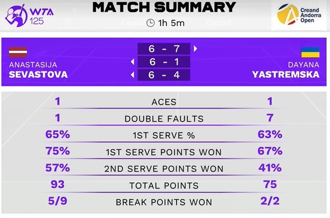 Ястремская не смогла обыграть Севастову на турнире в Андорре
