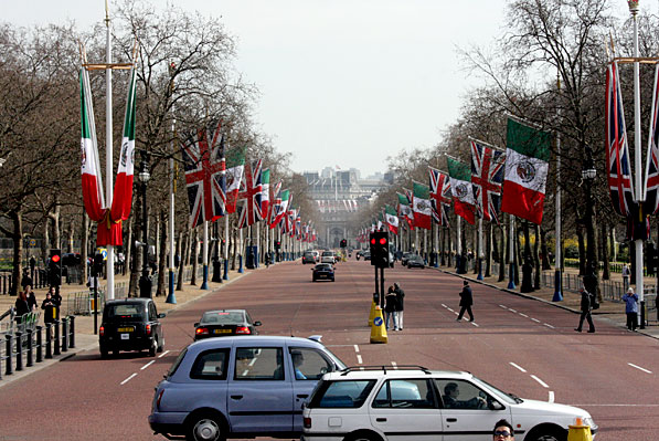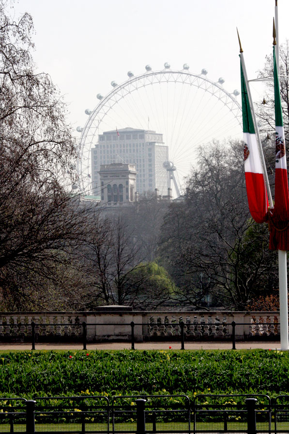 Мексиканские флаги - в честь приезда мексиканского президента, который уже успел уехать. А вот флагов в честь прибывшего 1 апреля Барака Обамы замечено не было :) Разве что полиции на улицах прибавилось, да кучек демонстрантов по всему Лондону