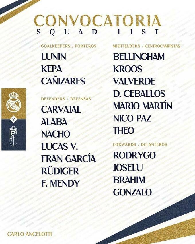 Мадридский «Реал» объявил заявку на матч 15-го тура Ла Лиги против «Гранады». В нее вошел конкурент Андрея Лунина Кепа Аррисабалага, который уже восстановился после травмы.