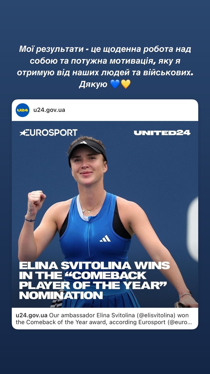 Свитолина – о своей награде от Eurosport: «Мощная мотивация от военных»