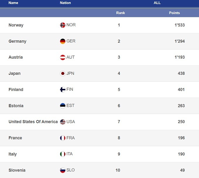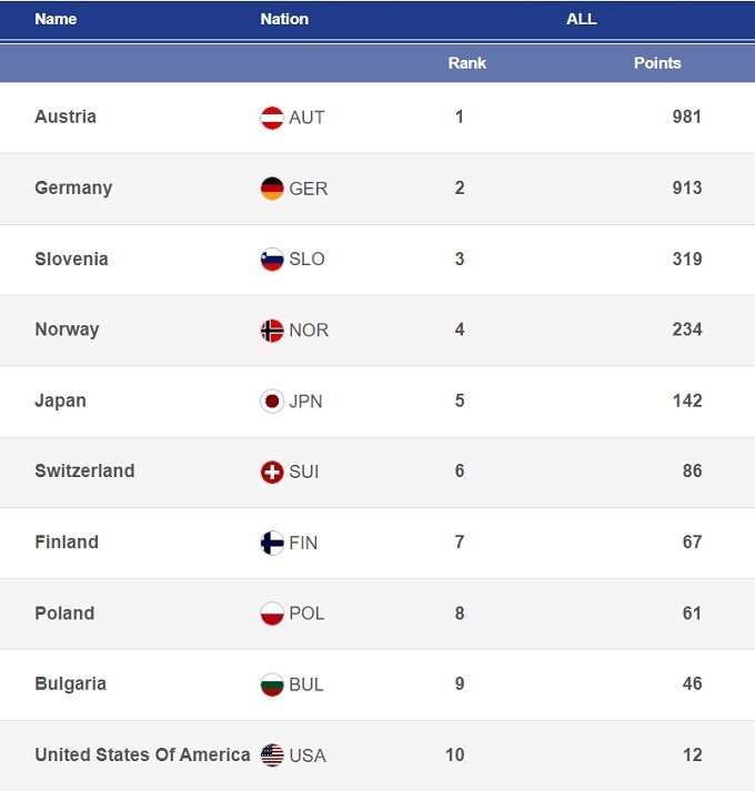 В целом же мы увидели примерно ту же расстановку сил, что и в Руке: сборные Австрии и Германии на голову сильнее всех остальных. Статистика после субботнего старта красноречива: Австрия набрала по итогам трех личных стартов 730 баллов в Кубок наций – это второй лучший результат в истории. Немцы со своим 701 баллом в нынешнем сезоне – на третьем место в этом рейтинге: