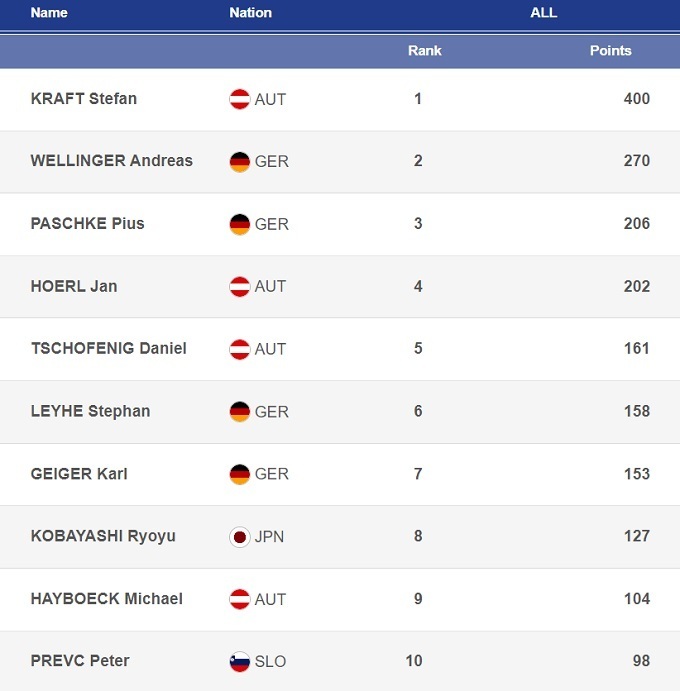 Отлично выступил в воскресенье Рёю Кобаяси – второе место в квалификации и пятое – в основных соревнованиях. Он стал первым представителем не Австрии и не Германии, кто в нынешнем сезоне попал в топ-5 на этапе Кубка мира. Форма звездного японца явно улучшается, и в ближайшее время он может стать серьезной угрозой австро-немецкой гегемонии.