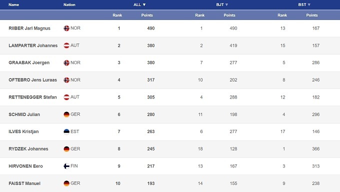 Так или иначе, сборная Норвегии выиграла все старты нынешнего сезона (кроме Риибера, еще один старт выиграл Йенс Лурос Офтебро). В то же время, у сборной Германии по-прежнему ни одного призового места в сезоне. При этом нельзя сказать, что Бундестим плохо готов – общий командный уровень хороший, лидеры команды постоянно на подступах к призовым местам, но до топ-3 все никак добраться не удается. Исключением стал разве что воскресный старт в Лиллехаммере, где в топ-10 попал только один немец – Юлиан Шмид (шестое место).