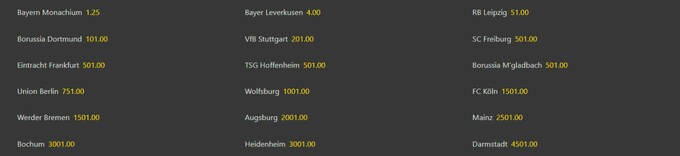 Котировки на чемпионство леверкузенской команды обрушились в 12.75 раза со старта сезона. Сейчас на титул команды можно поставить с коэффициентом 4.00, а перед 1-м туром чемпионата Германии букмекеры расценивали шансы на успех подопечных Хаби Алонсо в 51.00.