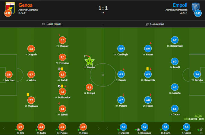 Оценки WhoScored за матч Дженоа – Эмполи – 1:1