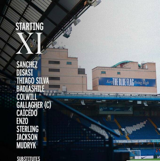 «Челси»: Санчес, Дисаси, Бадьяшиль, Тиаго Силва, Колуилл, Энцо Фернандес, Кайседо, Галлахер, Стерлинг, Мудрик, Джексон